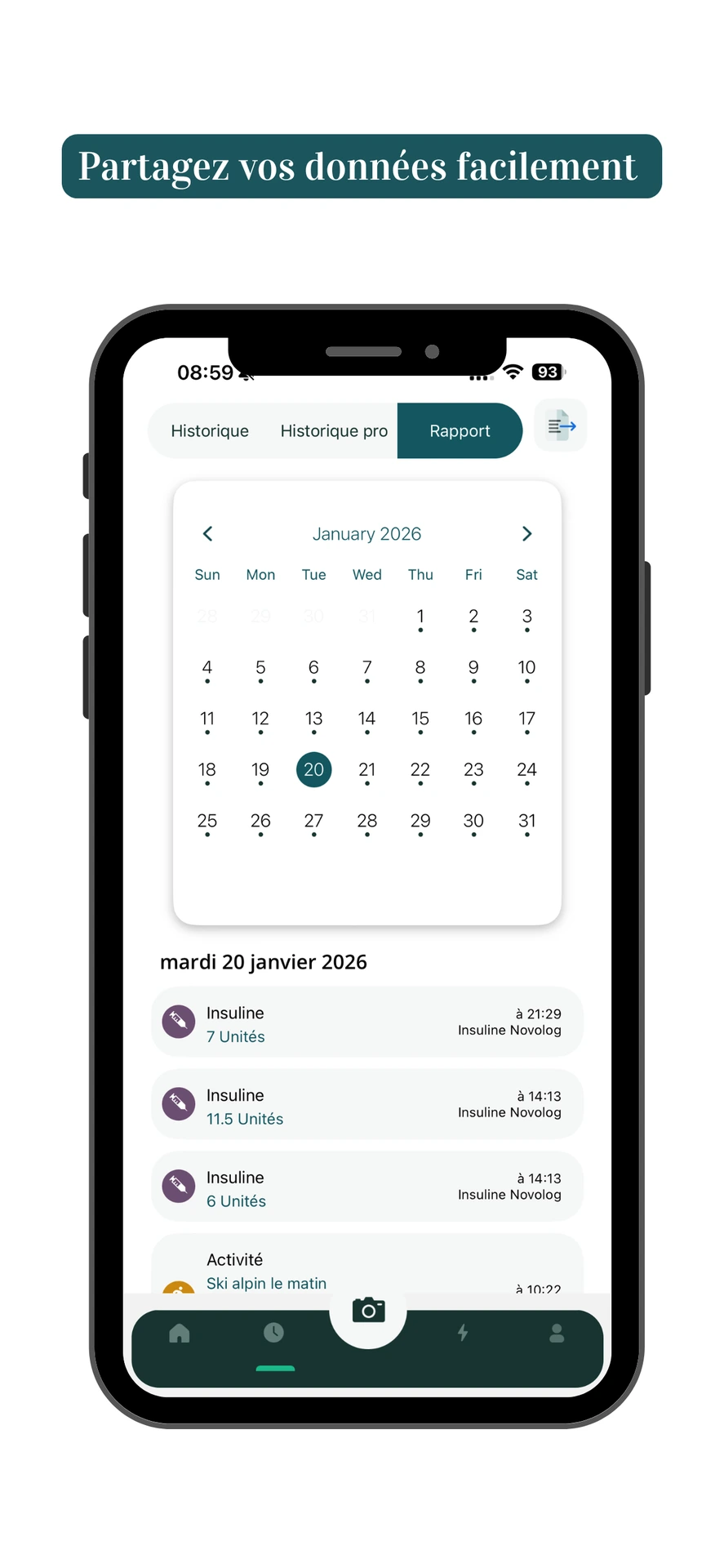 - Partager vos données avec un professionnel de santé (optionnel)